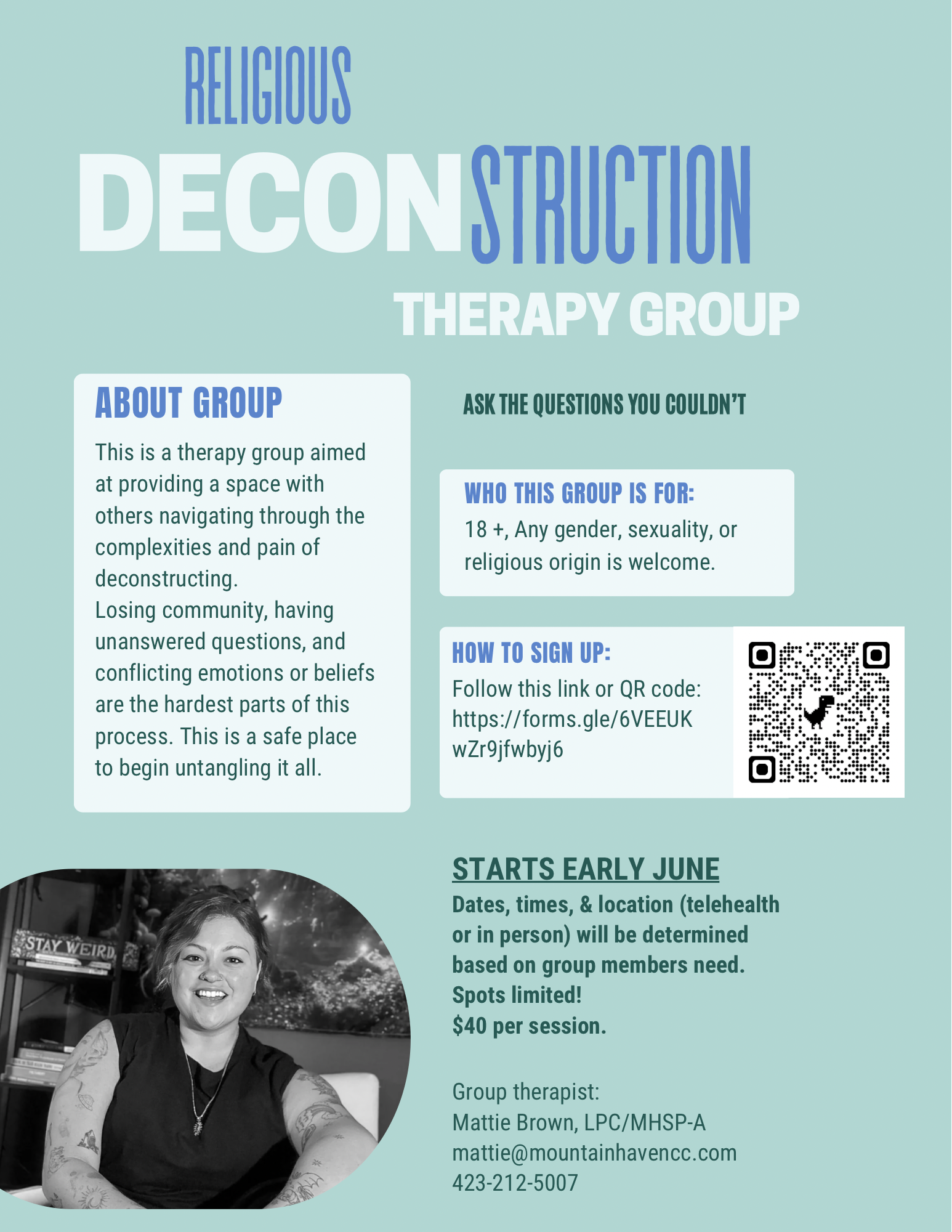 Mattie is starting a Religious Deconstruction group this summer!